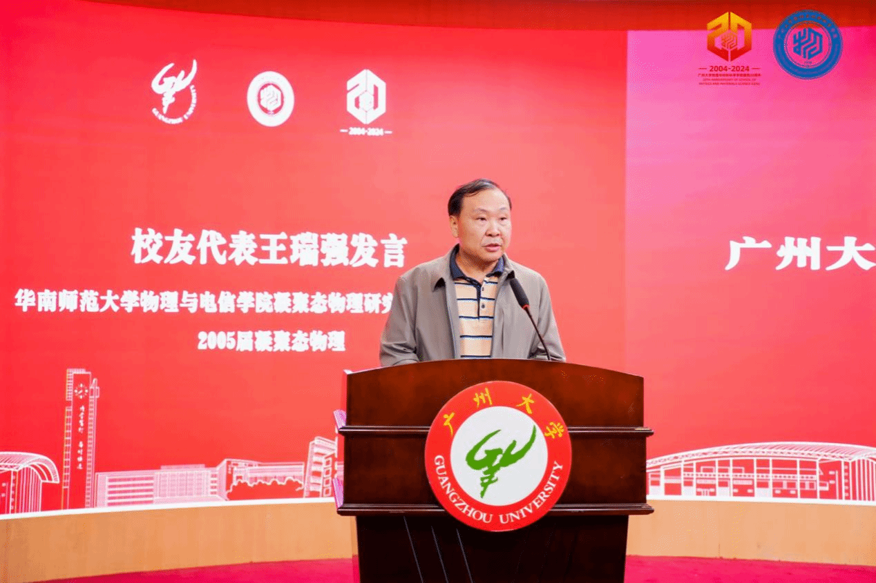 广东省物理学会秘书长姚道新教授、中山大学物理学院郭东辉教授分别向学院师生、各届校友表达祝贺,同时肯定了学院在教学、科研和社会服务方面取得的卓越成就,并祝福学院在未来的岁月里,培养出更多杰出人才,为社会的进步贡献更大的力量!