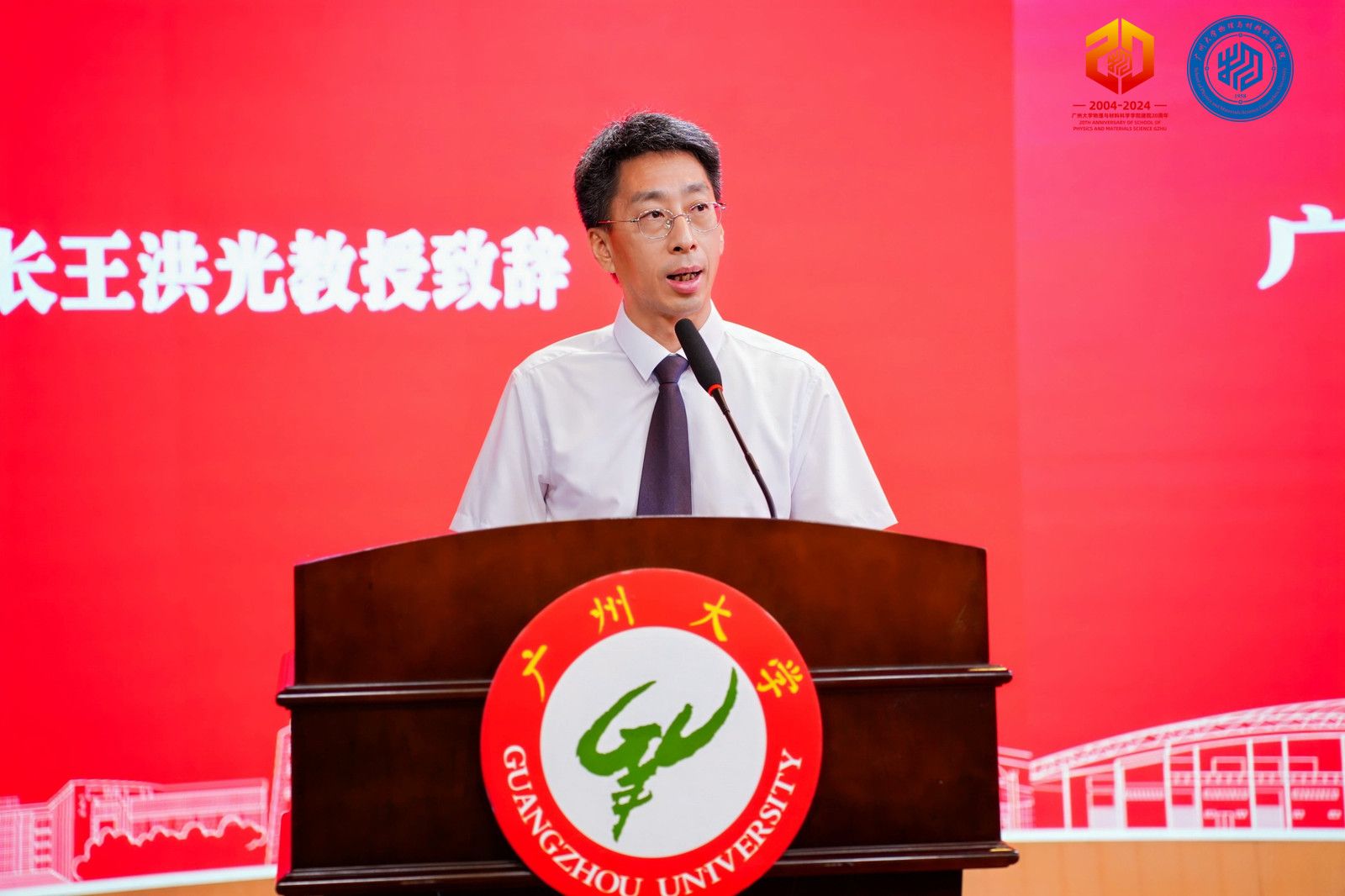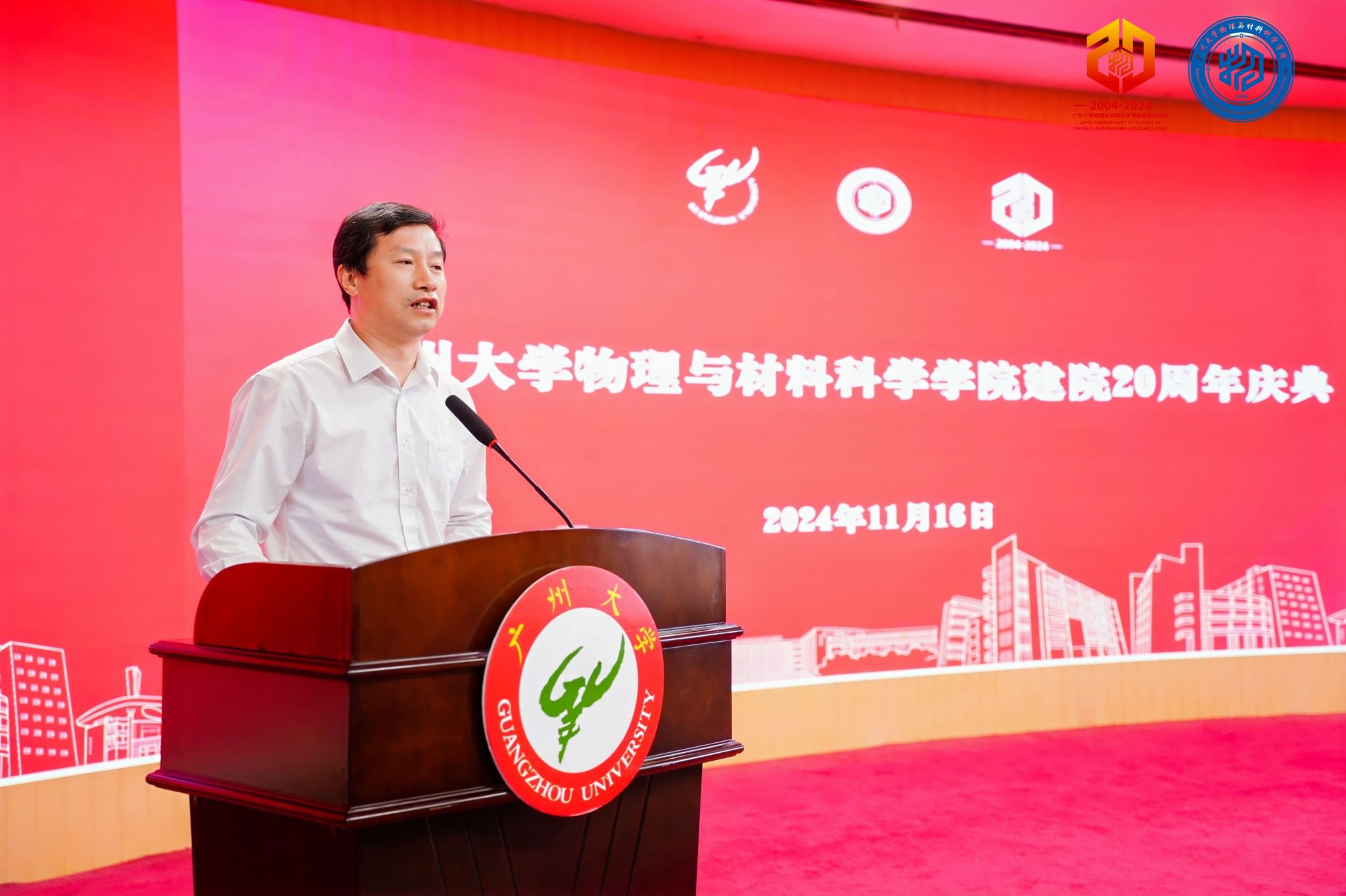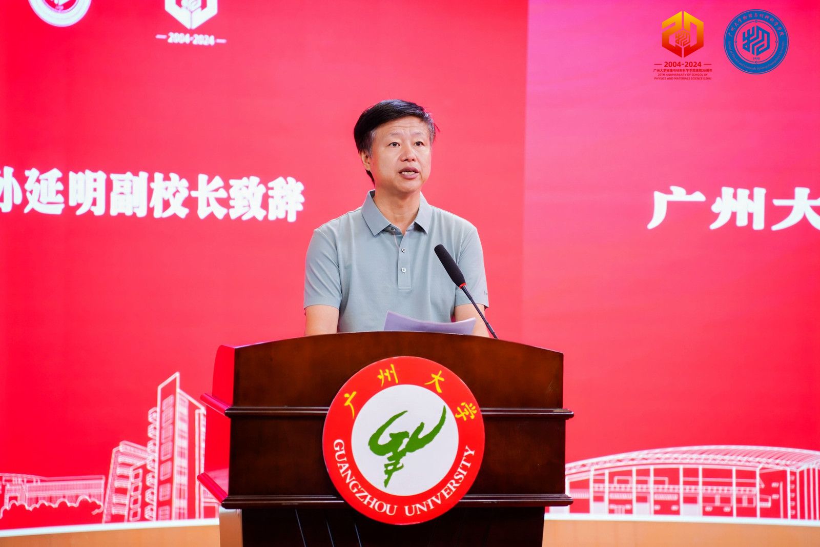 庆典伊始,广州大学副校长孙延明教授在致辞中充分肯定了学院20年来取得的成绩,并希望学院以20周年庆典为新起点,以科技发展、国家战略需求为牵引,在物理、天文与材料学科加强原创性、引领性的科技攻关,加大改革创新,强化师范教育,全面提高人才培养质量,努力培养更多胸怀梦想、堪当时代重任的优秀人才,为推动建设教育强国、实现高水平科技自立自强作出新的更大贡献。