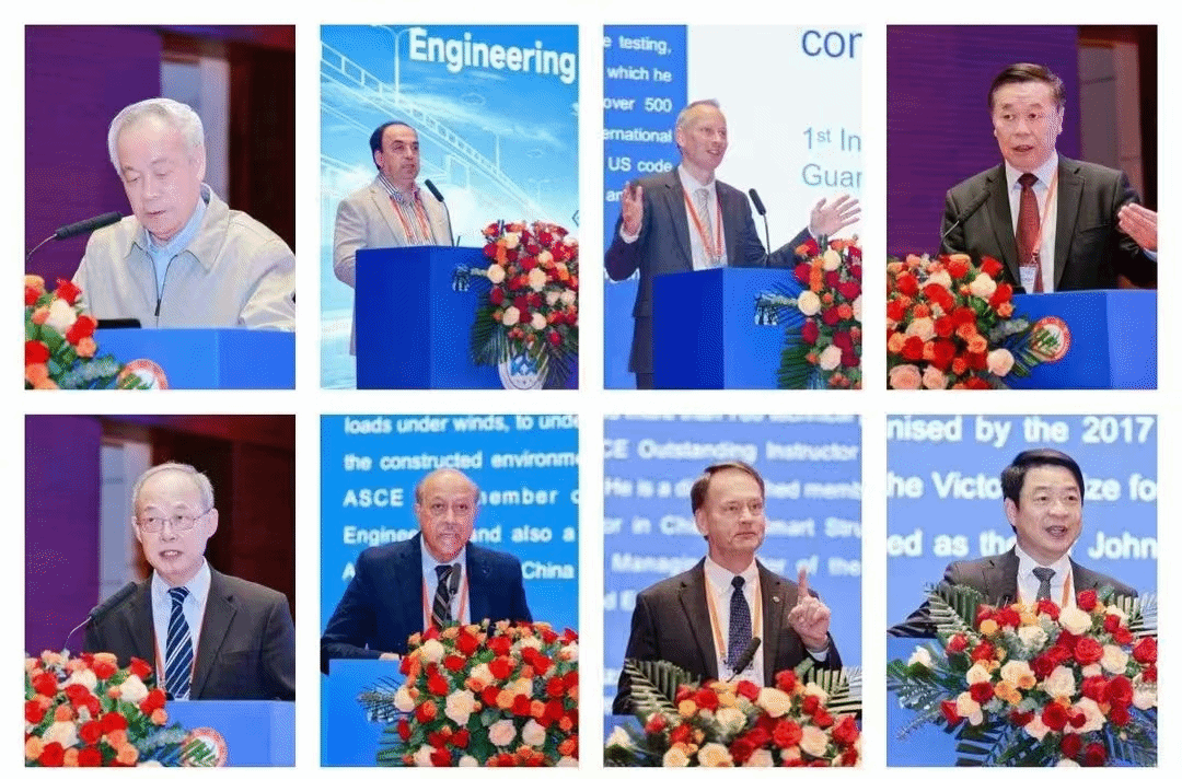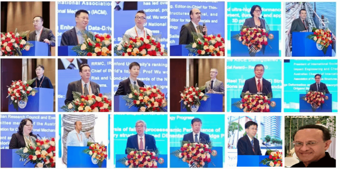 会议邀请了11位院士作大会报告。中国工程院院士周福霖作题为New Progress on Seismic Isolation and Dual Control of Vibration-Seismic Isolation for Engineering Structures的主题报告。英国皇家工程院院士Bassam A. Izzudin作题为Robustness of Multi-storey Buildings: Rational Assessment and Design的主题报告。中国工程院院士、奥地利科学院外籍院士杨永斌作题为Is there a limit on the length of long-span bridges?的主题报告。英国皇家工程院院士Leroy Gardner作题为Progress on the use of metal 3D printing in construction的主题报告。 澳大利亚工程院、中国工程院外籍院士郝洪作题为Prediction of Blast-induced RC Slab Fragmentation Using ALE-FEM-SPH and FGN Methods的主题报告。中国工程院外籍院士、美国国家工程院院士、印度国家工程院外籍院士Ahsan Kareem作题为Embracing the Winds of Change: A Journey through Wind Effects on Structures and the Next Frontiers的主题报告。中国工程院外籍院士、波兰科学院外籍院士Billie F. Spencer作题为Topology Optimization of Structures Subjected to Random Dynamic Loads的主题报告。日本工程院外籍院士、欧洲科学与艺术学院院士吴智深作题为Innovation and application of high-performance FRP-steel reinforced concrete and PC structures的主题报告。澳大利亚技术科学与工程院院士谢亿民作题为Generalized Topology Optimization for Structural Design的主题报告。澳大利亚工程院院士Jose Torero Cullen作题为Holistic Performance of Mass Timber Structures的主题报告。澳大利亚工程院、新加坡工程院院士Chien Ming Wang作题为Sea Fisher – A Novel Fish Cage for Ocean Aquaculture的主题报告。同时,大会Keynote Session 邀请到了包括两位澳大利亚技术科学与工程院士在内的18位结构工程领域的国际著名学者作大会报告。