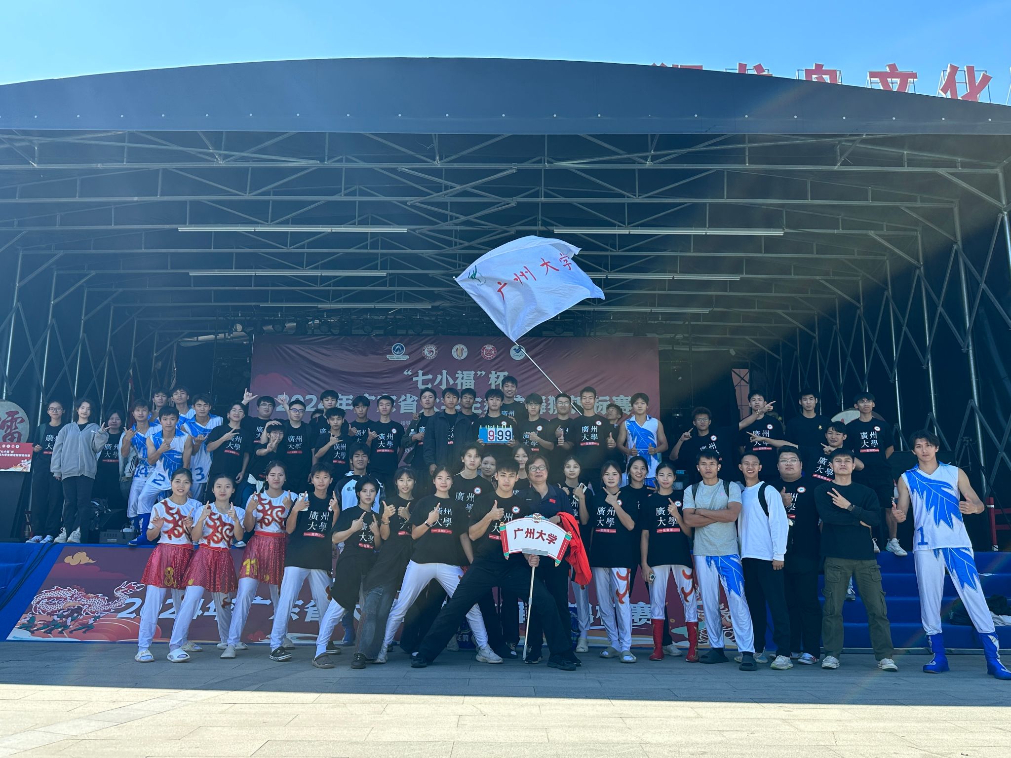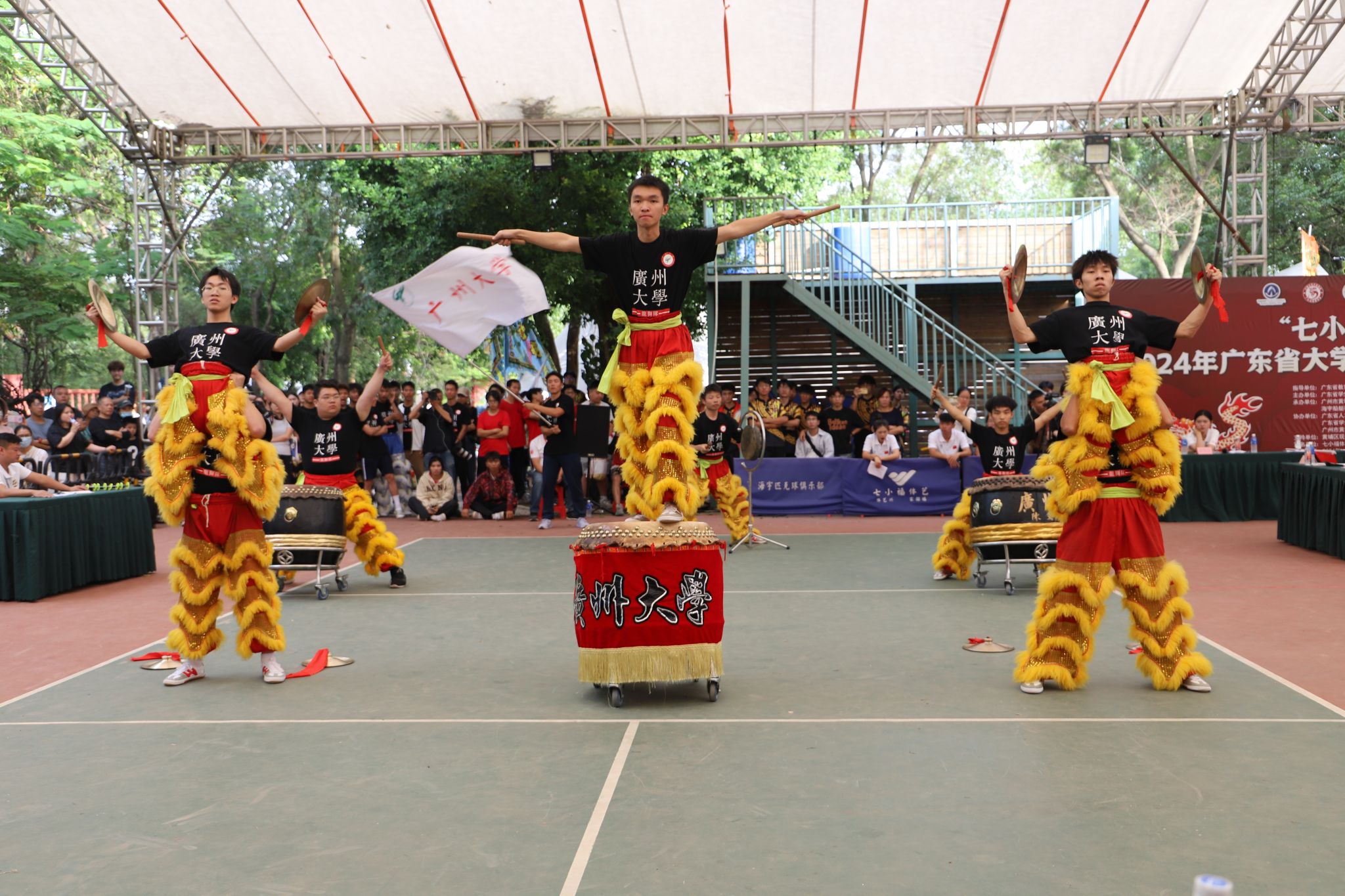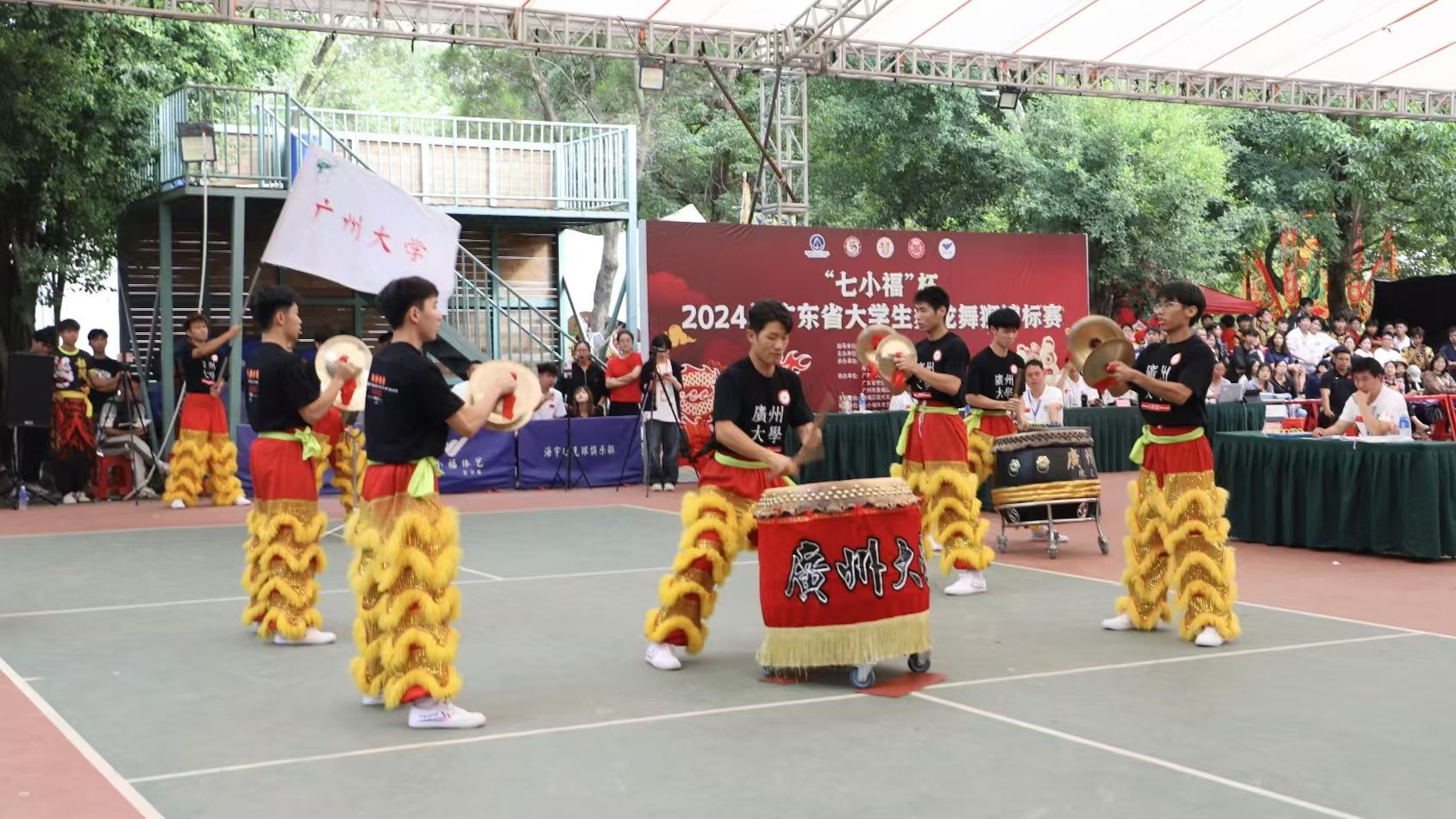 11月8日至11月10日,在广东省教育厅指导下,由广东省学生体育艺术联合会主办的2024年广东省大学生舞龙舞狮锦标赛于广州市黄埔区海宇龙狮龙舟文化园举行。广州大学龙狮队在教练员李湘远、曾秀霞及运动员的共同奋进下,以饱满热忱、精湛技艺全力拼搏,荣获乙组女子自选舞龙第一名,乙组男子自选舞龙第六名,乙组男子南狮集体鼓乐第六名,乙组男子传统南狮第五名,甲组男子集体鼓乐第二名,甲组男子群狮第二名。