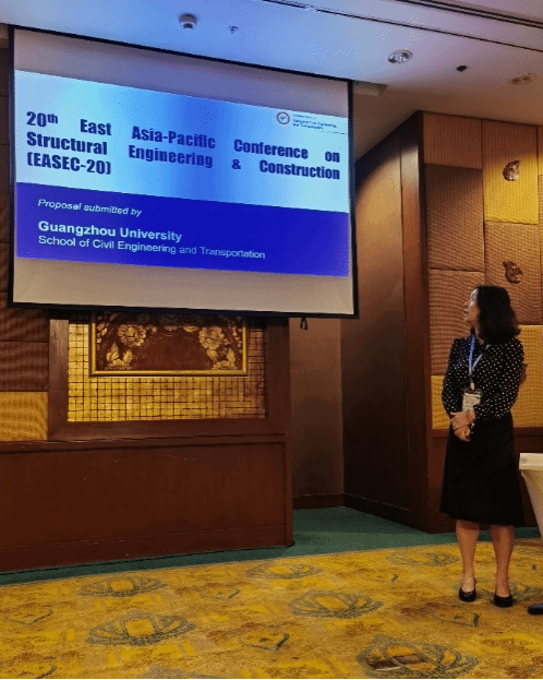 会议期间,我校任凤鸣教授作为广州大学代表,出席第二十届东亚-太平洋结构工程与建造会议(EASEC-20)举办权竞选会。任教授系统阐述了广州、广州大学在举办国际性学术会议方面的优势以及拟举办会议的系统性规划方案,成功为我校争取了EASEC-20的举办权。该会议将由我校土木与交通工程学院承办,谭平教授与任凤鸣教授为共同主席并于2028年在广州盛大举行。