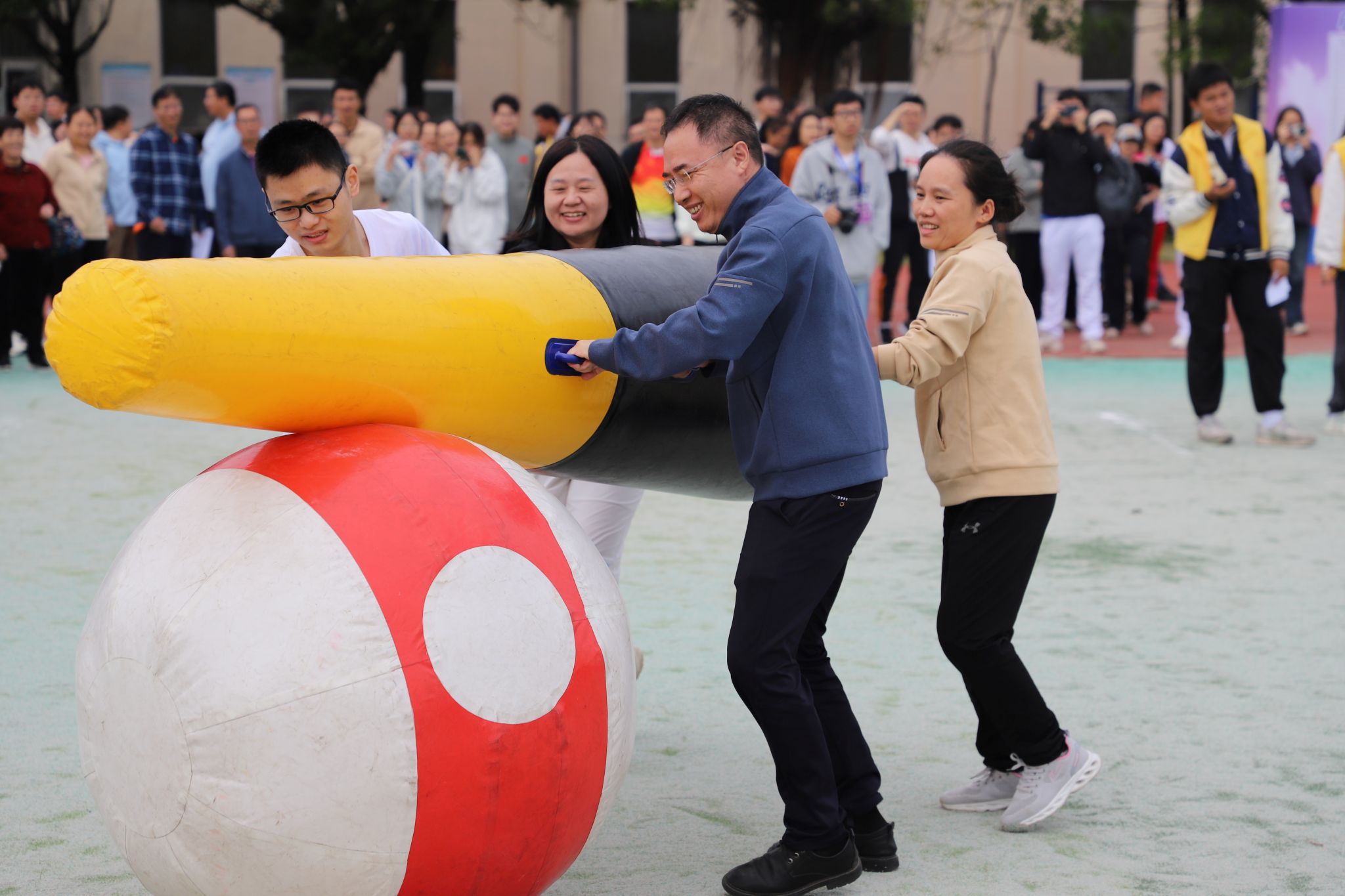 本次趣味运动会共设置“龙行天下”“与时俱进”“不倒森林”“热火朝天”和“众星捧月”等五个项目,既考验了教职工们的身体协调性和团队合作能力,又充满了趣味性,让参与者在轻松愉快的氛围中挑战自我,享受运动。