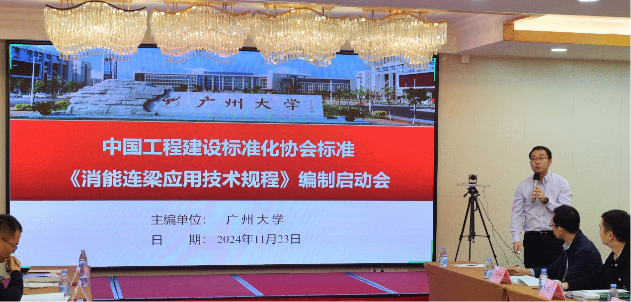 由我校主编的中国工程建设标准化协会标准《消能连梁应用技术规程》与《消能器性能检测与评价标准》编制组成立暨第一次工作会议,于11月23日上午和下午分别以线下与线上相结合的形式在广州东山宾馆召开。会议分别由中国工程建设标准化协会建筑振动专业委员会副秘书长黄伟(线上)、抗震专业委员会副秘书长毋剑平主持。