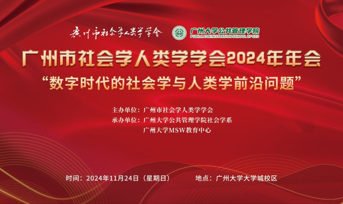 11月24日,由广州市社会学人类学学会主办、广州大学公共管理学院社会学系和广州大学MSW教育中心承办的广州市社会学人类学学会2024年年会“数字时代的社会学与人类学前沿问题”在广州大学大学城校区举行。会议得到了《暨南大学学报(社会科学版)》《华南农业大学学报(社会科学版)》《广东社会科学》《湖湘论坛》《青年探索》以及《社会工作与管理》等学术期刊的大力支持。来自社会学与人类学领域的专家学者和师生代表齐聚一堂,就数字时代的社会学与人类学前沿议题进行了深入的交流与探讨。